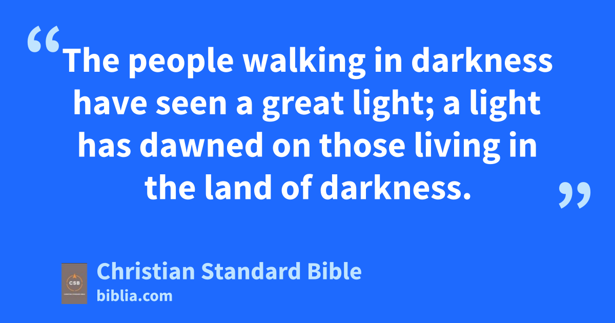 9 Nevertheless, the gloom of the distressed land will not be like that of the former times when he humbled the land of Zebulun and the land of Naphtali.ab But in the future he will bring honor to the way of the sea, to the land east of the Jordan, and to Galilee of the nations.