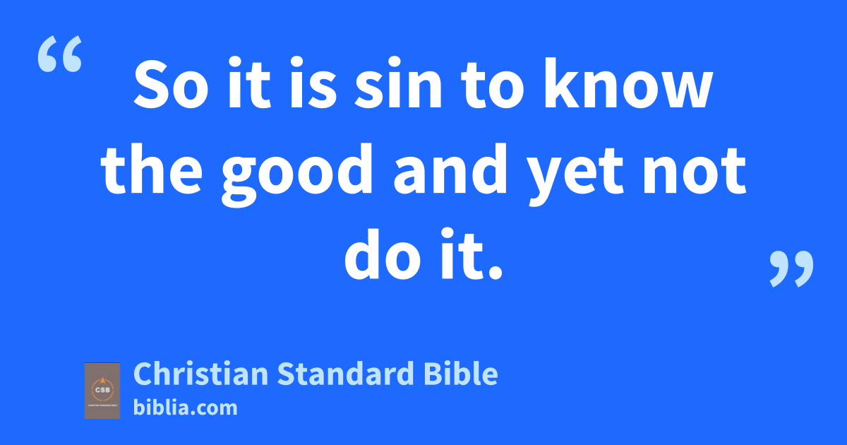 15 Instead, you should say, “If the Lord wills, we will live and do this or that.” 16 But as it is, you boast in your arrogance. All such boasting is evil.o 17 So it is sin to know the good and yet not do it.p