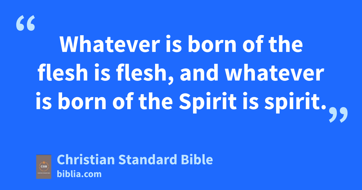 5 Jesus answered, “Truly I tell you, unless someone is bornu of water and the Spirit,v he cannot enter the kingdom of God. 6 Whatever is born of the fleshw is flesh, and whatever is born of the Spiritx is spirit. 7 Do not be amazed that I told you that you must be borny again. 8 The wind blows where it pleases, and you hear its sound, but you don’t know where it comes from or where it is going.z So it is with everyone born of the Spirit.”aa