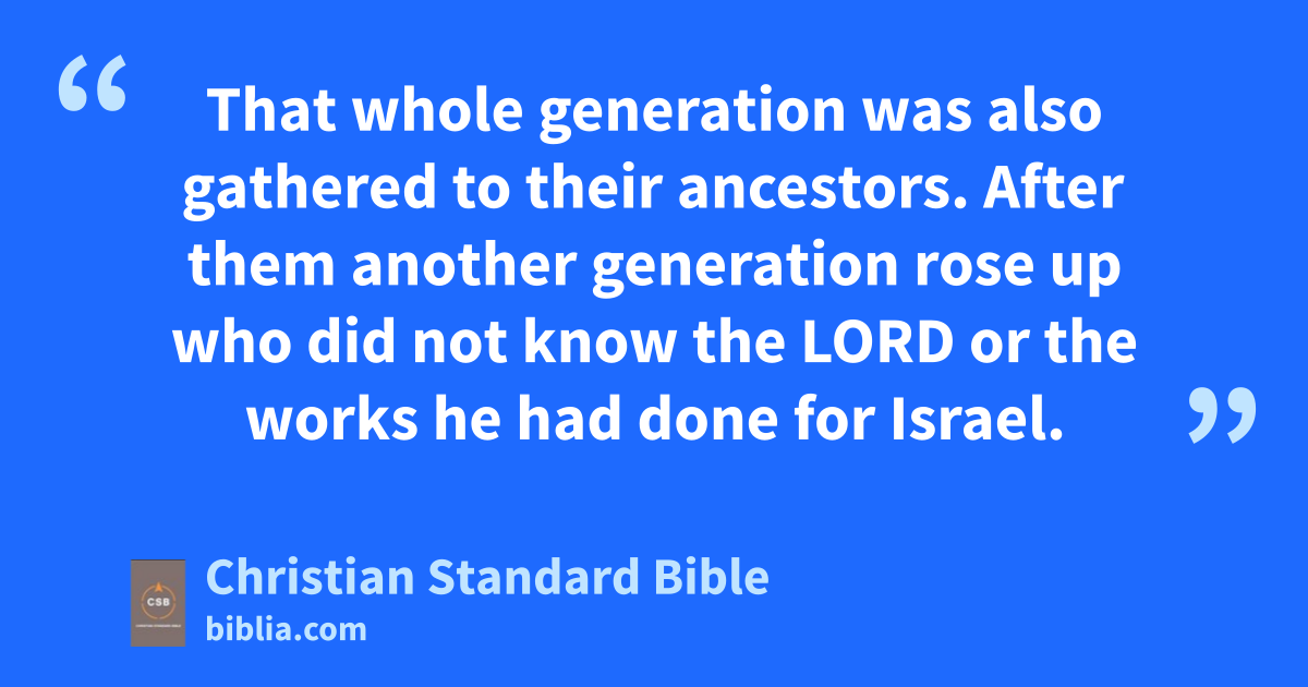 8 Joshua son of Nun, the servant of the Lord, died at the age of 110. 9 They buried him in the territory of his inheritance, in Timnath-heres, in the hill country of Ephraim,s north of Mount Gaash. 10 That whole generation was also gathered to their ancestors. After them another generation rose up who did not know the Lordt or the works he had done for Israel.