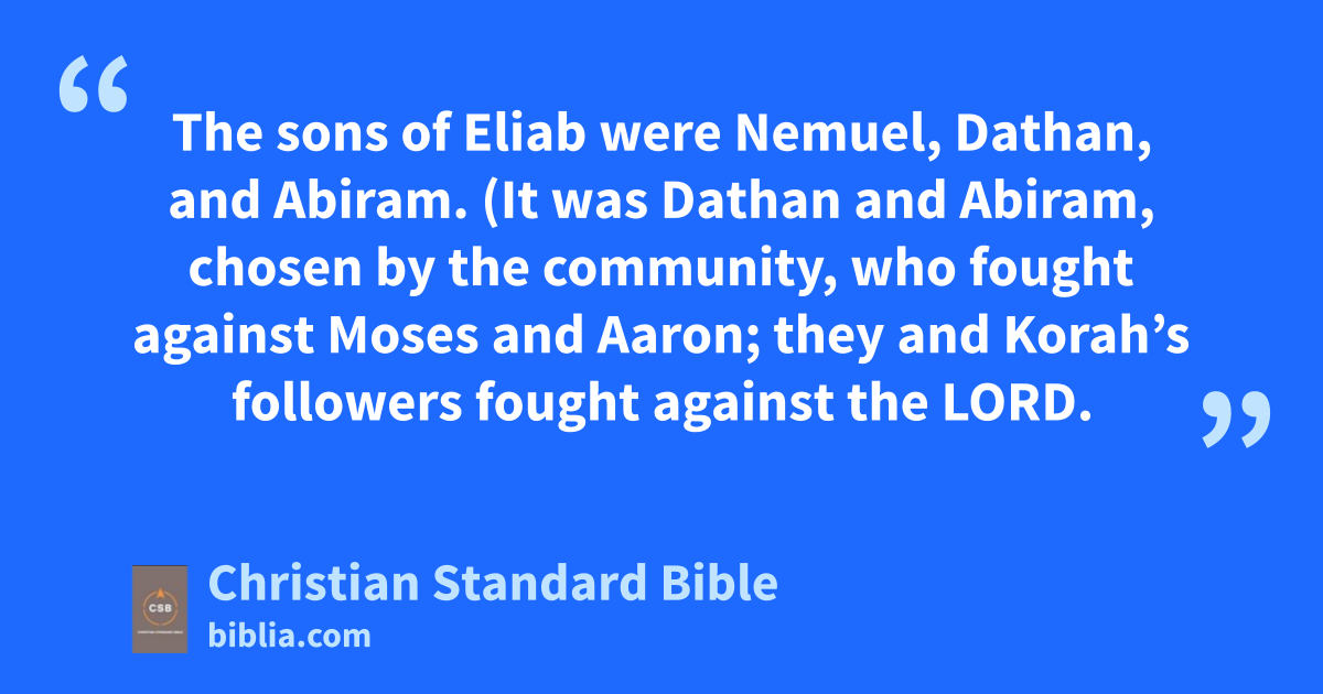 (It was Dathan and Abiram, chosen by the community, who fought against Moses and Aaron; they and Korah’s followers fought against the Lord.o 10 The earth opened its mouth and swallowed them with Korah, when his followers died and the fire consumed 250 men.p They serve as a warning sign. 11 The sons of Korah, however, did not die.)