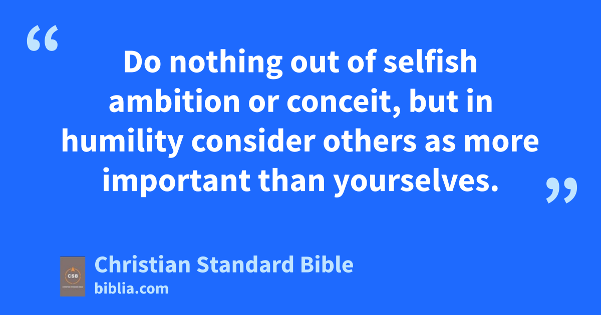 2 If, then, there is any encouragement in Christ, if any consolation of love,a if any fellowship with the Spirit,b if any affection and mercy,c 2 make my joy complete by thinking the same way,d having the same love,e united in spirit, intent on onef purpose. 3 Do nothing out of selfish ambitiong or conceit,h but in humilityi consider others as more importantj than yourselves. 4 Everyone should look not to his own interests,k but rather to the interests of others.l