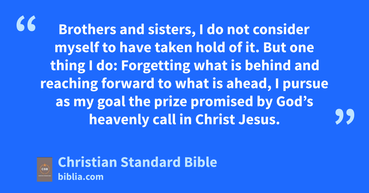 12 Not that I have already reached the goal or am already perfect, but I make every effort to take holdo of it because I also have been taken hold of by Christ Jesus. 13 Brothers and sisters, I do notA consider myself to have taken hold of it. But one thing I do: Forgetting what is behindp and reaching forward to what is ahead, 14 I pursue as my goal the prize promised by God’s heavenlyB call in Christ Jesus.q 15 Therefore, let all of us who are mature think this way. And if you think differently about anything, God will revealr this also to you. 16 In any case, we should live up to whatever truth we have attained. 17 Join in imitating me, brothers and sisters, and pay careful attention to those who live according to the example you have in us. 18 For I have often told you, and now say again with tears, that many live as enemies of the crosss of Christ. 19 Their end is destruction; their god is their stomach; their gloryt is in their shame; and they are focused on earthly things, 20 Our citizenship is in heaven, and we eagerly wait for a Savior from there, the Lord Jesus Christ. 21 He will transform the body of our humble condition into the likeness of his gloriousu body,v by the power that enables him to subject everything to himself.