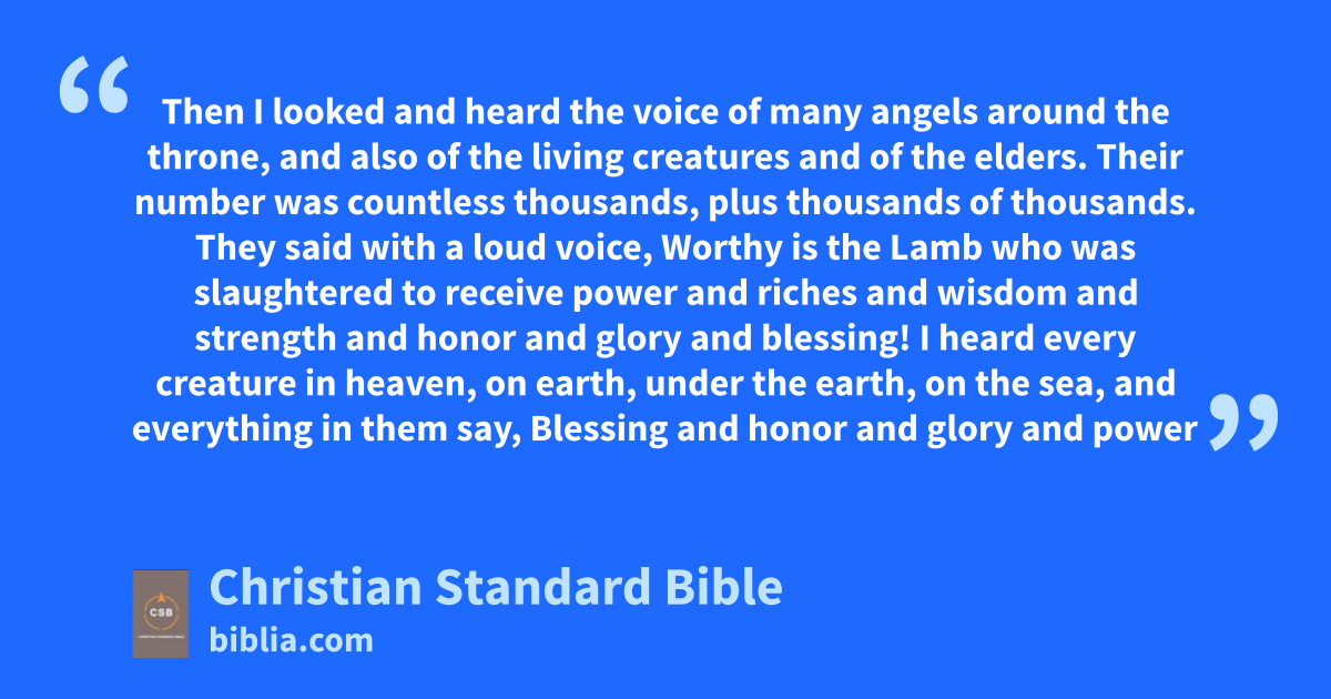 11 Then I looked and heard the voice of many angels around the throne, and also of the living creatures and of the elders. Their number was countless thousands, plus thousands of thousands.y 12 They said with a loud voice,