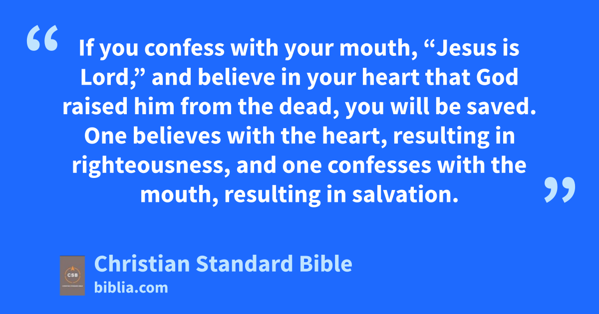 10 Brothers and sisters, my heart’s desire and prayer to God concerning themB is for their salvation. 2 I can testify about them that they have zeal for God,i but not according to knowledge. 3 Since they are ignorant of the righteousness of Godj and attempted to establish their own righteousness, they have not submitted to God’s righteousness. 4 For Christ is the endC of the law for righteousnessk to everyone who believes,l 5 since Moses writes about the righteousness that is from the law: The one who does these things will live by them.D,m 6 But the righteousness that comes from faithn speaks like this: Do not say in your heart, “Who will go up to heaven?”E,o that is, to bring Christ down 7 or, “Who will go down into the abyss?”F,p that is, to bring Christ up from the dead.q 8 On the contrary, what does it say? The message is near you, in your mouth and in your heart.G,r This is the message of faith that we proclaim: 9 If you confess with your mouth, “Jesus is Lord,”s and believe in your heartt that God raised him from the dead,u you will be saved. 10 One believes with the heart, resulting in righteousness, and one confesses with the mouth, resulting in salvation. 11 For the Scripture says, Everyone who believes on him will not be put to shame,H,v 12 since there is no distinction between Jew and Greek,w because the same Lordx of ally richly blesses all who call on him. 13 For everyone who calls on the name of the Lord will be saved.I,z