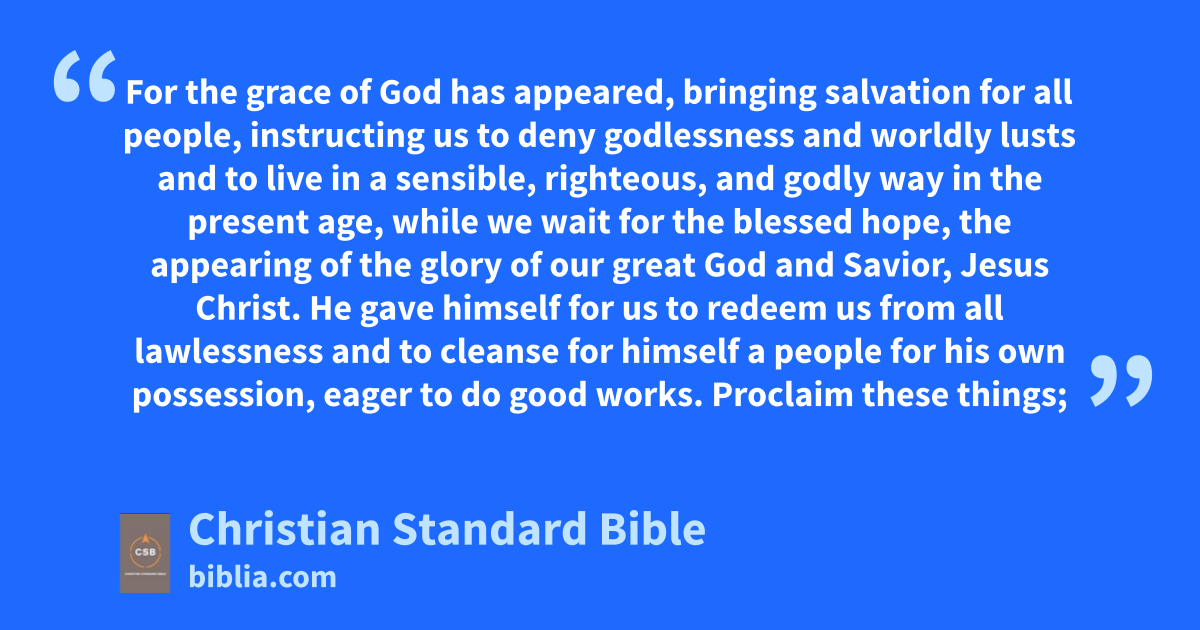 11 For the grace of God has appeared, bringing salvationB for all people,aq 12 instructing us to deny godlessnessar and worldly lustsas and to live in a sensible, righteous,at and godlyau way in the present age, 13 while we wait for the blessed hope,av the appearing of the gloryaw of our great God and Savior, Jesus Christ. 14 He gave himself for usax to redeem us from all lawlessness and to cleanse for himself a people for his own possession,ay eager to do good works.