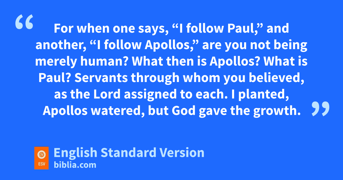 5 What then is Apollos? What is Paul? iServants through whom you believed, jas the Lord assigned to each. 6 kI planted, lApollos watered, mbut God gave the growth. 7 So nneither he who plants nor he who waters is anything, but only God who gives the growth. 8 He who plants and he who waters are one, and each owill receive his wages according to his labor. 9 For we are pGod’s fellow workers. You are God’s field, qGod’s building.