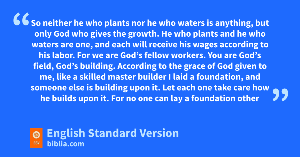 5 What then is Apollos? What is Paul? iServants through whom you believed, jas the Lord assigned to each. 6 kI planted, lApollos watered, mbut God gave the growth. 7 So nneither he who plants nor he who waters is anything, but only God who gives the growth. 8 He who plants and he who waters are one, and each owill receive his wages according to his labor. 9 For we are pGod’s fellow workers. You are God’s field, qGod’s building.