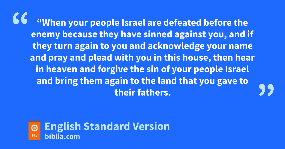 33 x“When your people Israel are defeated before the enemy because they have sinned against you, and yif they turn again to you and acknowledge your name and pray and plead with you in this house, 34 then hear in heaven and forgive the sin of your people Israel and bring them again to the land that you gave to their fathers.