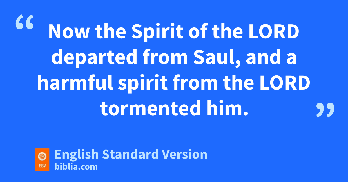 14 lNow the Spirit of the Lord departed from Saul, mand a harmful spirit from the Lord tormented him. 15 And Saul’s servants said to him, “Behold now, a harmful spirit from God is tormenting you. 16 Let our lord now command your servants nwho are before you to seek out a man who is skillful in playing the lyre, and when the harmful spirit from God is upon you, he will oplay it, and you will be well.” 17 So Saul said to his servants, “Provide for me a man who can play well and bring him to me.” 18 One of the young men answered, “Behold, I have seen a son of Jesse the Bethlehemite, who is skillful in playing, pa man of valor, a man of war, prudent in speech, and a man of good presence, qand the Lord is with him.” 19 Therefore Saul sent messengers to Jesse and said, “Send me David your son, rwho is with the sheep.” 20 sAnd Jesse took a donkey laden with bread and a skin of wine and a young goat and sent them by David his son to Saul. 21 And David came to Saul tand entered his service. And Saul loved him greatly, and he became his armor-bearer. 22 And Saul sent to Jesse, saying, “Let David remain in my service, for he has found favor in my sight.” 23 And uwhenever the harmful spirit from God was upon Saul, David took the lyre oand played it with his hand. So Saul was refreshed and was well, and the harmful spirit departed from him.