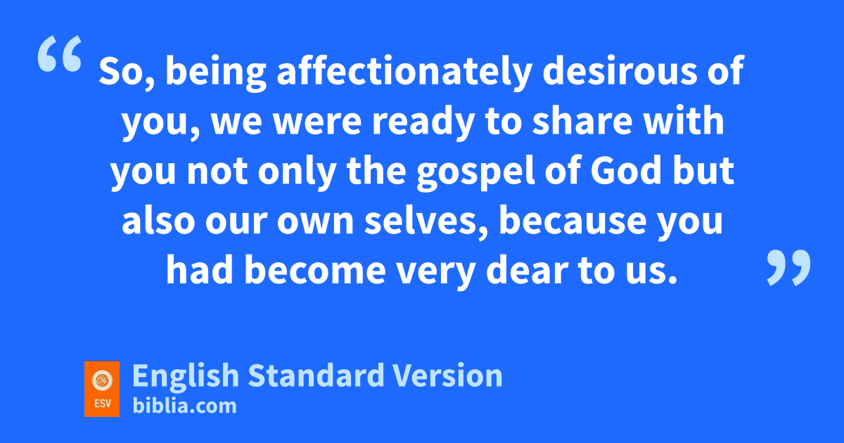 2 For you yourselves know, brothers,1 that our fcoming to you gwas not in vain. 2 But though we had already suffered and been shamefully treated hat Philippi, as you know, iwe had boldness in our God jto declare to you the gospel of God in the midst of much kconflict. 3 For lour appeal does not spring from merror or nimpurity or oany attempt to deceive, 4 but just as we have been approved by God pto be entrusted with the gospel, so we speak, not qto please man, but to please God rwho tests our hearts. 5 sFor we never came with words of flattery,2 as you know, nor with a pretext for greed—tGod is witness. 6 uNor did we seek glory from people, whether from you or from others, vthough we could have made wdemands as xapostles of Christ. 7 But we were ygentle3 among you, zlike a nursing mother taking care of her own children. 8 So, being affectionately desirous of you, we were ready to share with you not only the gospel of God abut also our own selves, because you had become very dear to us.