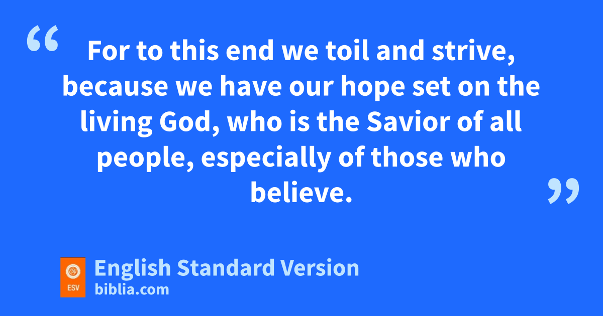 6 iIf you put these things before the brothers,1 you will be a good servant of Christ Jesus, being trained in the words of the faith and of the good doctrine that you have jfollowed. 7 Have nothing to do with irreverent, ksilly myths. Rather ltrain yourself for godliness; 8 for while mbodily training is of some value, godliness nis of value in every way, as oit holds promise for the present life and also for the life to come. 9 The saying is ptrustworthy and deserving of full acceptance. 10 For to this end we toil and strive,2 because we have our hope set on the living God, qwho is the Savior of all people, especially of those who believe.