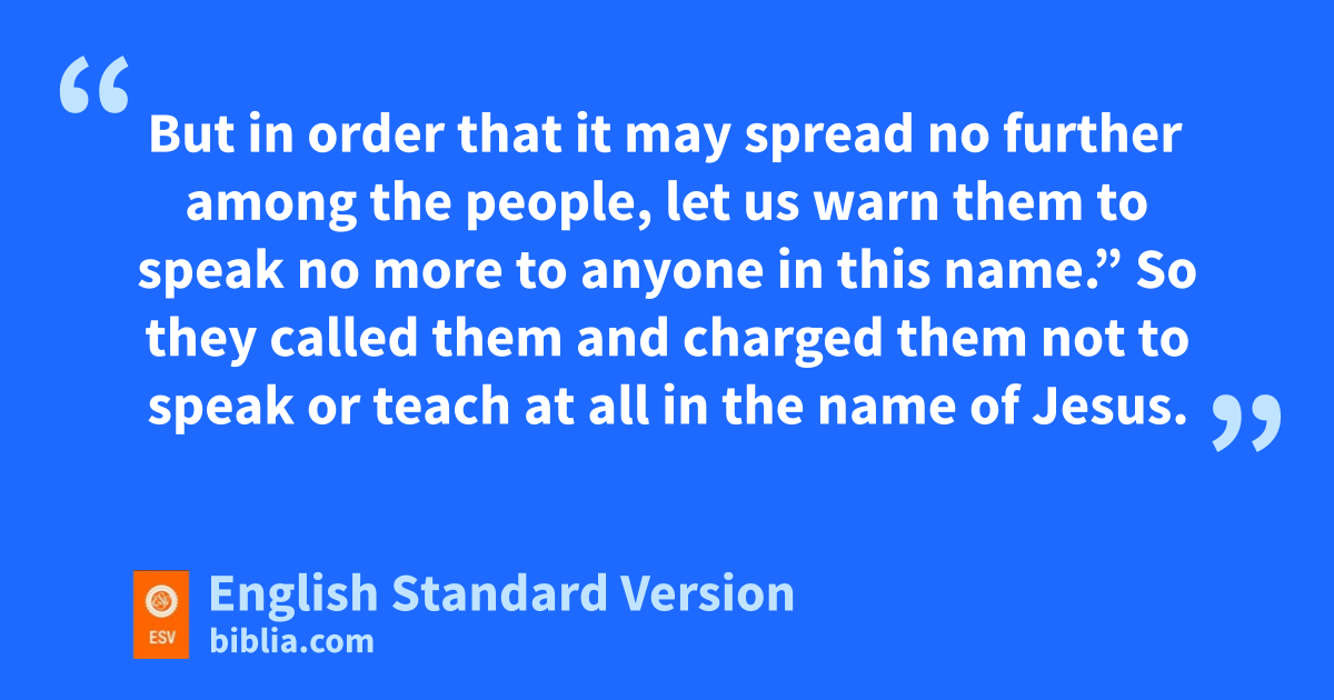 13 eNow when they saw the boldness of Peter and John, and perceived that they were uneducated, common men, they were astonished. And they recognized that they had been with Jesus. 14 But seeing the man who was healed fstanding beside them, gthey had nothing to say in opposition. 15 But when they had commanded them to leave the council, they conferred with one another, 16 saying, h“What shall we do with these men? For that ia notable sign has been performed through them is evident to all the inhabitants of Jerusalem, and we cannot deny it. 17 But in order that it may spread no further among the people, let us warn them jto speak no more to anyone in this name.” 18 So they called them and charged them not to speak or teach at all in the name of Jesus. 19 But Peter and John answered them, k“Whether it is right in the sight of God to listen to you rather than to God, you must judge, 20 for lwe cannot but speak of what mwe have seen and heard.” 21 And when they had further threatened them, they let them go, finding no way to punish them, nbecause of the people, for all were praising God ofor what had happened. 22 For the man on whom this sign of healing was performed was more than forty years old.