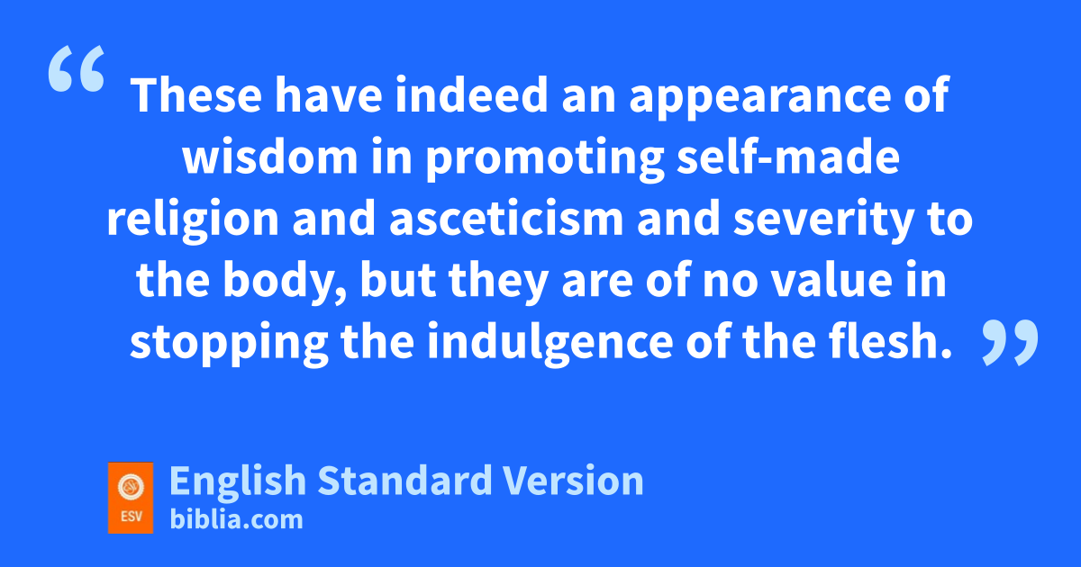 20 If with Christ tyou died to the uelemental spirits of the world, vwhy, as if you were still alive in the world, do you submit to regulations— 21 w“Do not handle, Do not taste, Do not touch” 22 (xreferring to things that all perish as they are used)—according to yhuman precepts and teachings? 23 These have indeed an appearance of wisdom in zpromoting self-made religion and asceticism and severity to the body, but they are aof no value in stopping the indulgence of the flesh.