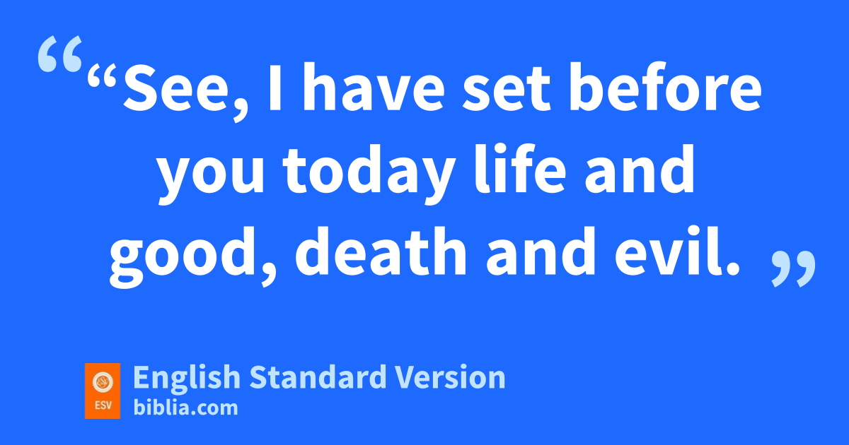 15 “See, vI have set before you today life and good, death and evil. 16 If you obey the commandments of the Lord your God1 that I command you today, wby loving the Lord your God, by walking in his ways, and by keeping his commandments and his statutes and his rules,2 then you shall live and multiply, and the Lord your God will bless you in the land that you are entering to take possession of it. 17 But if xyour heart turns away, and you will not hear, but are drawn away to worship other gods and serve them, 18 yI declare to you today, that you shall surely perish. You shall not live long in the land that you are going over the Jordan to enter and possess. 19 I call heaven and earth to witness against you today, that I have set before you life and death, zblessing and curse. Therefore choose life, that you and your offspring may live, 20 loving the Lord your God, obeying his voice aand holding fast to him, for bhe is your life and length of days, that you may dwell in cthe land that the Lord swore to your fathers, to Abraham, to Isaac, and to Jacob, to give them.”