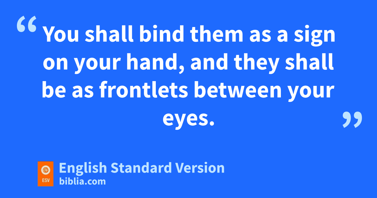 4 “Hear, O Israel: dThe Lord our God, the Lord is one.2 5 You eshall love the Lord your God with all your heart and with all your soul and with all your might. 6 And fthese words that I command you today shall be on your heart. 7 gYou shall teach them diligently to your children, and shall talk of them when you sit in your house, and when you walk by the way, and when you lie down, and when you rise. 8 hYou shall bind them as a sign on your hand, and they shall be as frontlets between your eyes. 9 iYou shall write them on the doorposts of your house and on your gates.