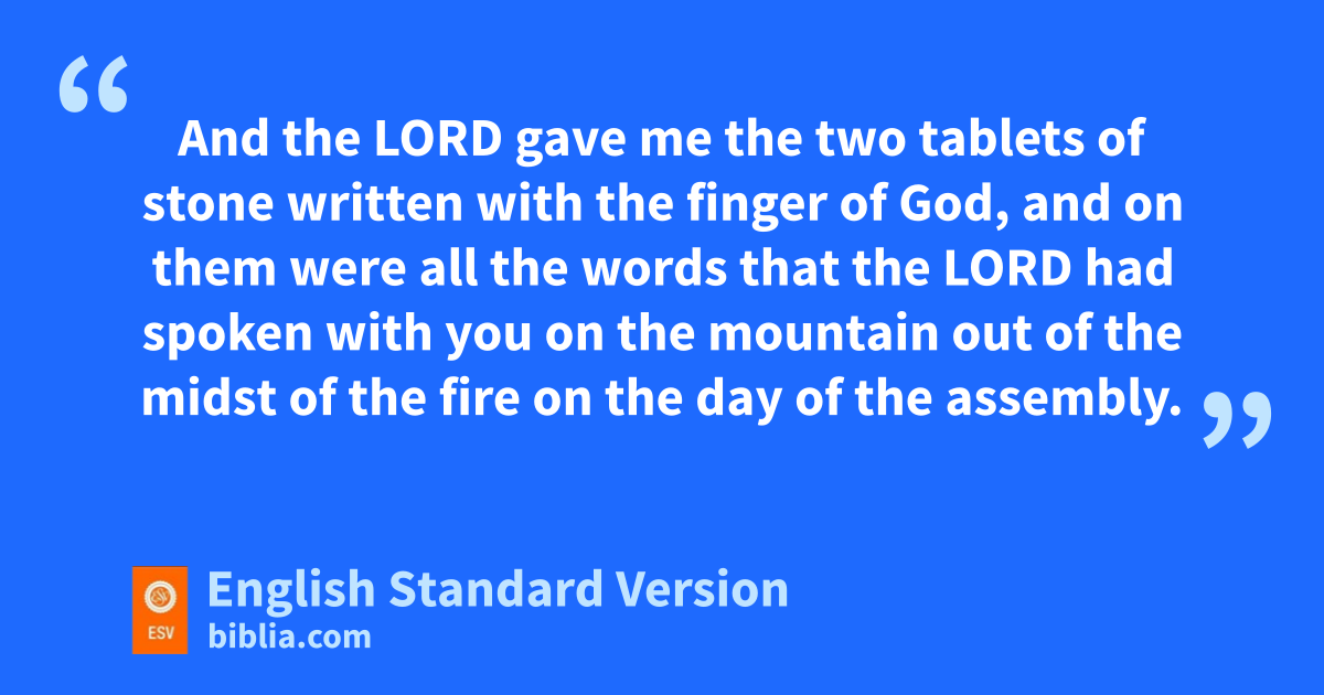 6 “Know, therefore, that the Lord your God is not giving you this good land to possess because of your righteousness, for you are ga stubborn people. 7 Remember and do not forget how you provoked the Lord your God to wrath in the wilderness. hFrom the day you came out of the land of Egypt until you came to this place, you have been rebellious against the Lord. 8 Even iat Horeb you provoked the Lord to wrath, and the Lord was so angry with you that he was ready to destroy you. 9 jWhen I went up the mountain to receive the tablets of stone, the tablets of the covenant that the Lord made with you, I remained on the mountain kforty days and forty nights. I neither ate bread nor drank water. 10 And lthe Lord gave me the two tablets of stone written with the finger of God, and on them were all the words that the Lord had spoken with you on the mountain out of the midst of the fire mon the day of the assembly. 11 And at the end of forty days and forty nights the Lord gave me the two tablets of stone, the tablets of the covenant. 12 Then the Lord said to me, n‘Arise, go down quickly from here, for your people whom you have brought from Egypt have acted corruptly. They have oturned aside quickly out of the way that I commanded them; they have made themselves a metal image.’