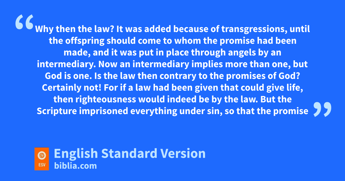 21 Is the law then contrary to the promises of God? Certainly not! For mif a law had been given that could give life, then righteousness would indeed be by the law. 22 But the Scripture nimprisoned everything under sin, so that othe promise by faith in Jesus Christ might be given pto those who believe.