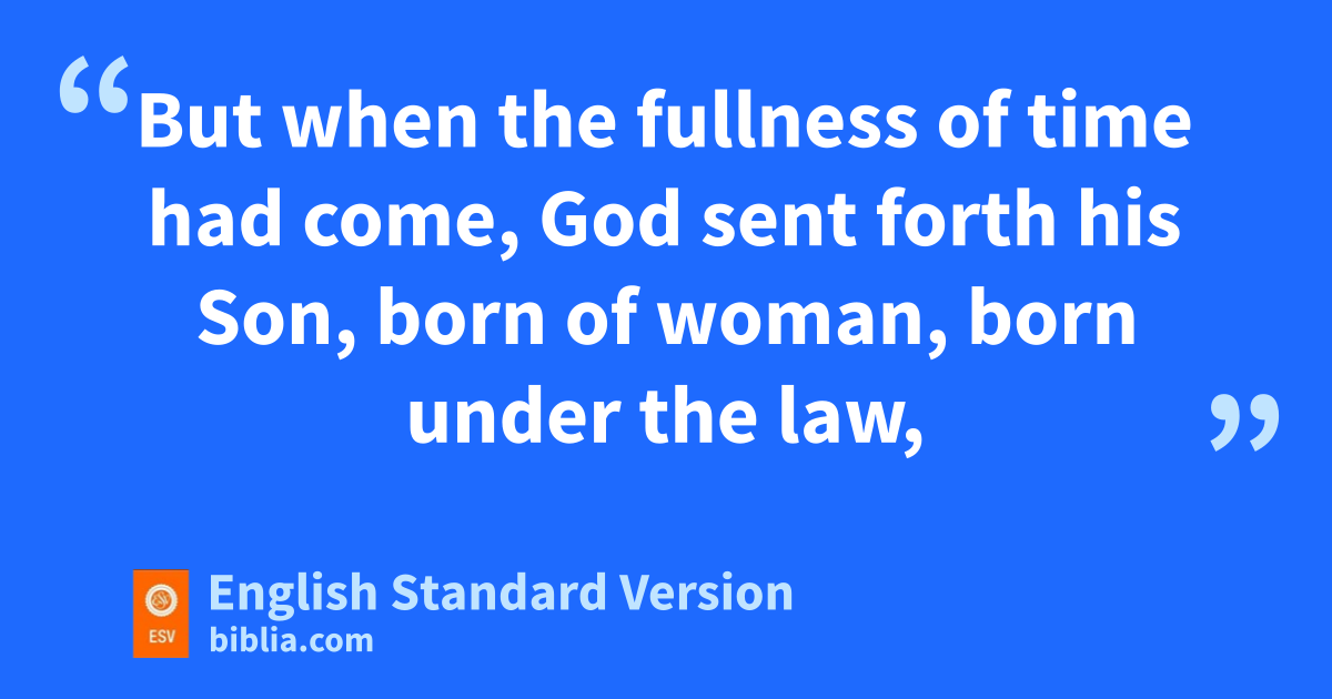 4 I mean that the heir, as long as he is a child, is no different from a slave,1 though he is the owner of everything, 2 but he is under guardians and managers until the date set by his father. 3 In the same way we also, when we were children, cwere enslaved to the elementary principles2 of the world. 4 But dwhen the fullness of time had come, God sent forth his Son, eborn fof woman, born gunder the law, 5 hto redeem those who were under the law, so that we might receive iadoption as sons. 6 And because you are sons, God has sent jthe Spirit of his Son into our hearts, crying, “Abba! Father!” 7 So you are no longer a slave, but a son, and if a son, then kan heir through God.