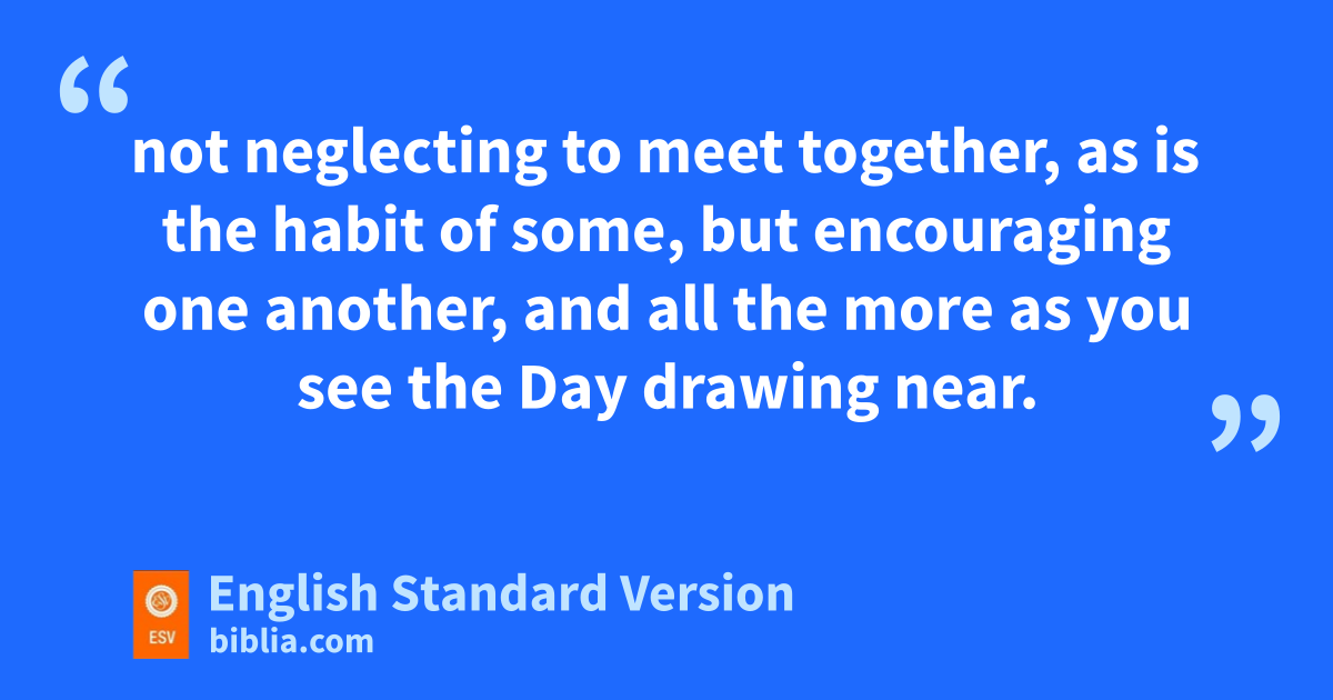19 pTherefore, brothers,3 since we have confidence to enter qthe holy places by the blood of Jesus, 20 by rthe new and living way that he opened for us through sthe curtain, that is, through his flesh, 21 and since we have ta great priest over the house of God, 22 let us draw near with a true heart in full assurance of faith, with our hearts usprinkled clean vfrom an evil conscience and our bodies wwashed with pure water. 23 xLet us hold fast the confession of our hope without wavering, for yhe who promised is faithful. 24 And zlet us consider how to stir up one another to love and good works, 25 anot neglecting to meet together, as is the habit of some, but encouraging one another, and ball the more as you see cthe Day drawing near.