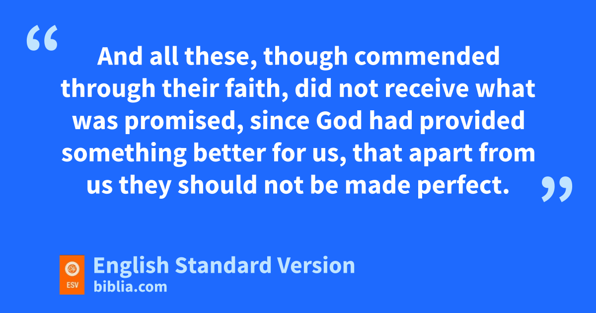 39 And all these, uthough commended through their faith, udid not receive what was promised, 40 since God had provided something better for us, vthat apart from us they should not be made perfect.
