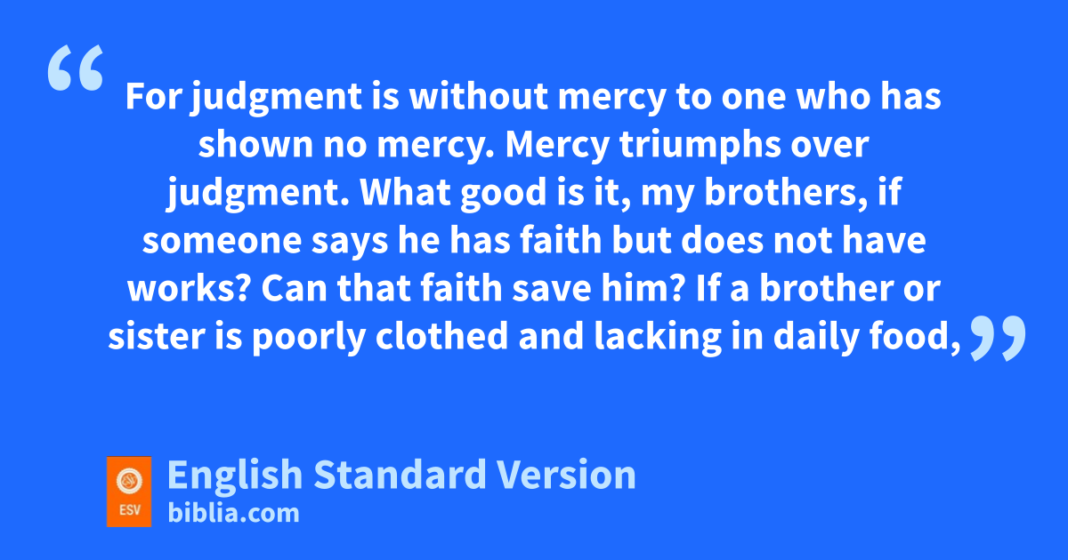 14 What good is it, my brothers, if someone says he has faith obut does not have works? Can that faith save him? 15 pIf a brother or sister is poorly clothed and lacking in daily food, 16 qand one of you says to them, “Go in peace, be warmed and filled,” without giving them the things needed for the body, what good2 is that? 17 So also faith by itself, if it does not have works, is dead.