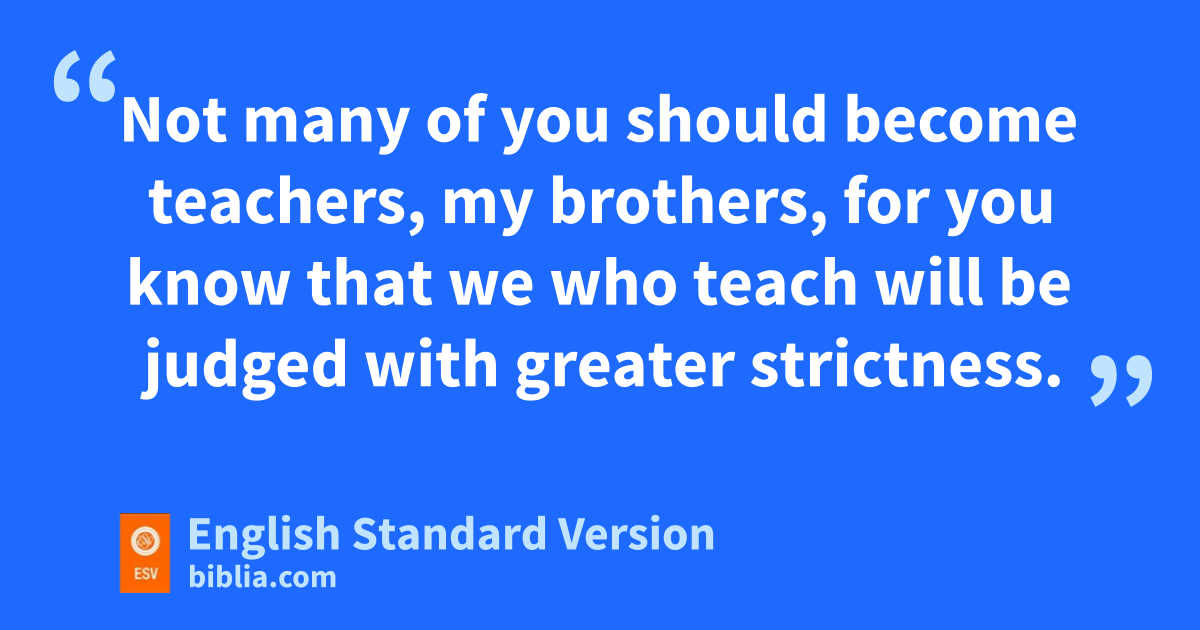 3 cNot many of you should become teachers, my brothers, for you know that we who teach will be judged with greater strictness. 2 For dwe all stumble in many ways. And if anyone does not stumble in what he says, ehe is a perfect man, fable also to bridle his whole body. 3 If we put gbits into the mouths of horses so that they obey us, we guide their whole bodies as well. 4 Look at the ships also: though they are so large and are driven by strong winds, they are guided by a very small rudder wherever the will of the pilot directs. 5 So also the tongue is a small member, yet hit boasts of great things.