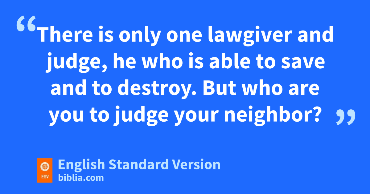 11 mDo not speak evil against one another, brothers.4 The one who speaks against a brother or njudges his brother, speaks evil against the law and judges the law. But if you judge the law, you are not a doer of the law but a judge. 12 There is only oone lawgiver and pjudge, he who is able to save and qto destroy. But rwho are you to judge your neighbor?