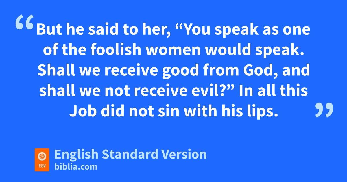 9 Then his wife said to him, “Do you still vhold fast your integrity? qCurse God and die.” 10 But he said to her, “You speak as one of the wfoolish women would speak. xShall we receive good from God, and shall we not receive evil?”1 yIn all this Job did not zsin with his lips.