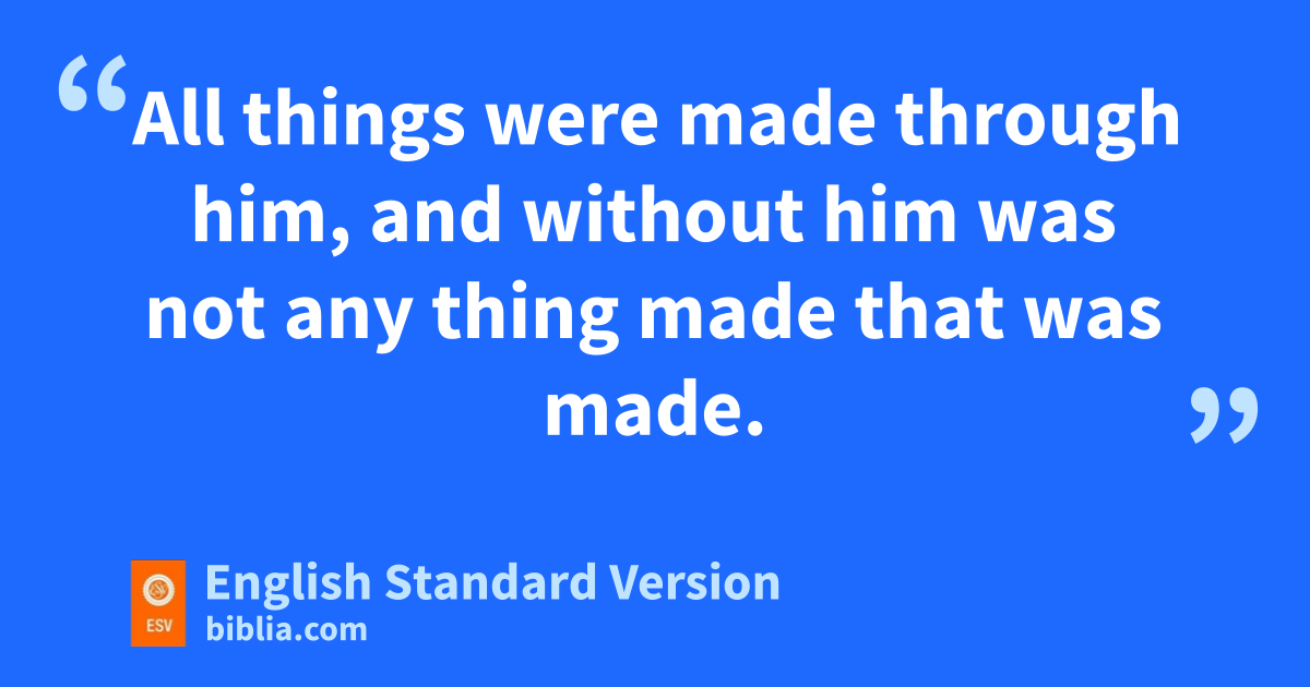 1 aIn the beginning was bthe Word, and cthe Word was with God, and dthe Word was God. 2 He was in the beginning with God. 3 eAll things were made through him, and without him was not any thing made that was made. 4 fIn him was life,1 and gthe life was the light of men. 5 hThe light shines in the darkness, and the darkness has not overcome it.