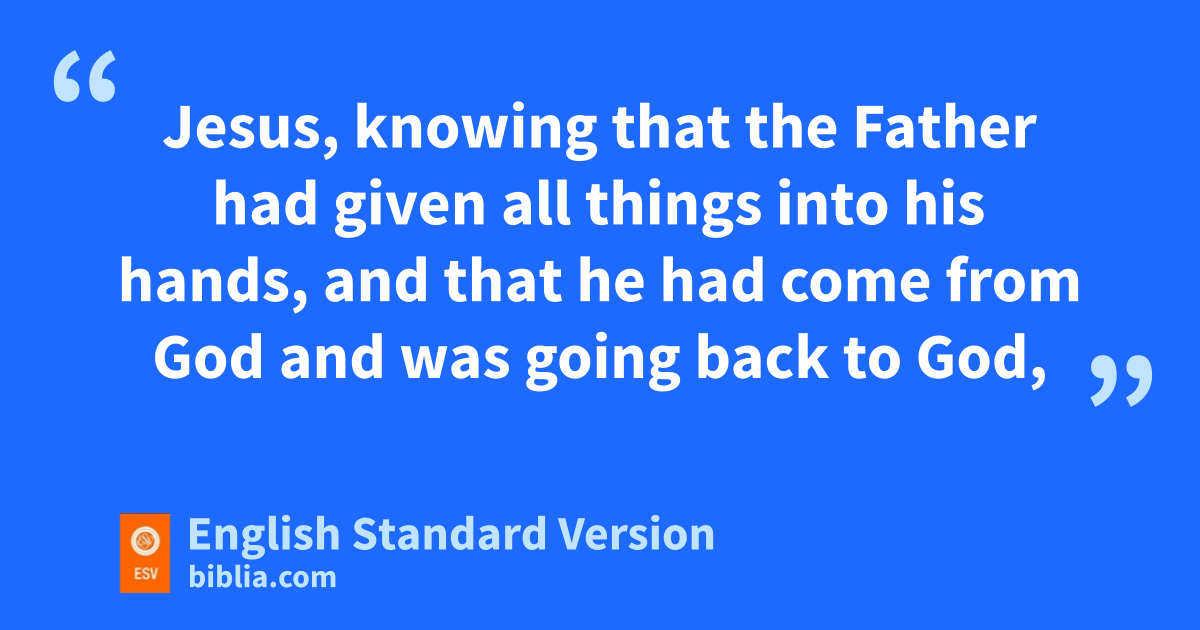 13 Now nbefore othe Feast of the Passover, when Jesus knew that phis hour had come qto depart out of this world to the Father, rhaving loved shis own who were in the world, he loved them to the end. 2 During supper, when tthe devil had already put it into the heart of Judas Iscariot, Simon’s son, to betray him, 3 Jesus, knowing uthat the Father had given all things into his hands, and that vhe had come from God and wwas going back to God, 4 rose from supper. He laid aside his outer garments, and taking a towel, xtied it around his waist. 5 Then he ypoured water into a basin and began to wash the disciples’ feet and to wipe them with the towel that was wrapped around him. 6 He came to Simon Peter, who said to him, “Lord, do you wash my feet?” 7 zJesus answered him, “What I am doing ayou do not understand now, but afterward you will understand.” 8 bPeter said to him, “You shall never wash my feet.” Jesus answered him, c“If I do not wash you, you have no share with me.” 9 Simon Peter said to him, “Lord, not my feet only but also my hands and my head!” 10 Jesus said to him, “The one who has bathed does not need to wash, dexcept for his feet,1 but is completely clean. And eyou2 are clean, fbut not every one of you.” 11 gFor he knew who was to betray him; that was why he said, “Not all of you are clean.”