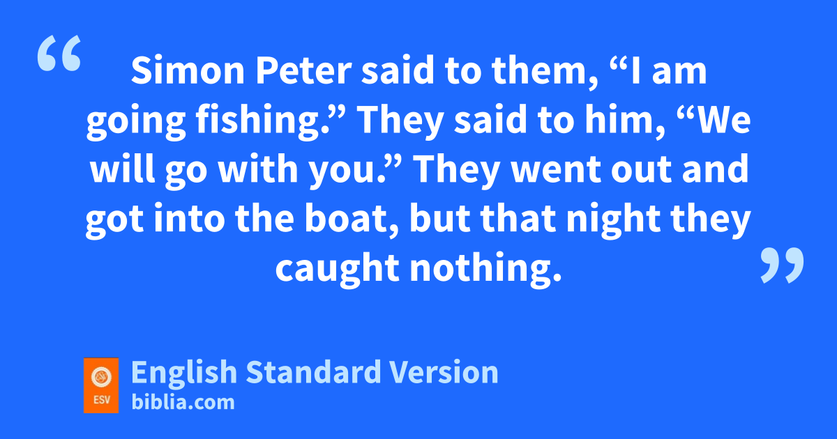 21 After this Jesus brevealed himself cagain to the disciples by dthe Sea of Tiberias, and he revealed himself in this way. 2 Simon Peter, eThomas (called the Twin), Nathanael of fCana in Galilee, gthe sons of Zebedee, and two others of his disciples were together. 3 Simon Peter said to them, “I am going fishing.” They said to him, “We will go with you.” They went out and got into the boat, but hthat night they caught nothing.