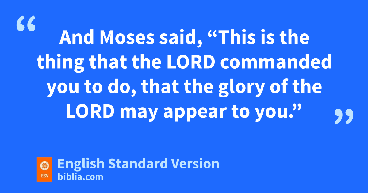 9 rOn the eighth day Moses called Aaron and his sons and the elders of Israel, 2 and he said to Aaron, s“Take for yourself a bull calf for a sin offering and ta ram for a burnt offering, both without blemish, and offer them before the Lord. 3 And say to the people of Israel, u‘Take a male goat for a sin offering, and a calf and a lamb, both a year old without blemish, for a burnt offering, 4 and an ox and a ram for peace offerings, to sacrifice before the Lord, and va grain offering mixed with oil, for wtoday the Lord will appear to you.’ ” 5 And they brought what Moses commanded in front of the tent of meeting, and all the congregation drew near and stood before the Lord. 6 And Moses said, “This is the thing that the Lord commanded you to do, that the glory of the Lord may appear to you.” 7 Then Moses said to Aaron, “Draw near to the altar and xoffer your sin offering and your burnt offering and ymake atonement for yourself and for the people, and bring the offering of the people and make atonement for them, as the Lord has commanded.”