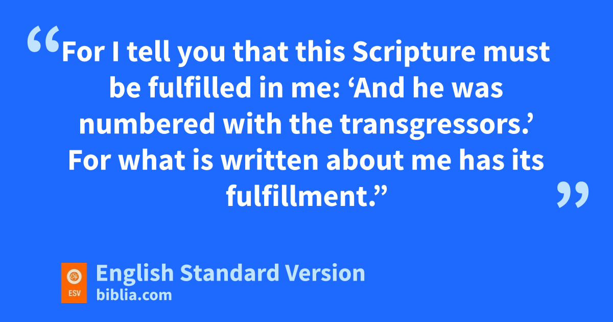 35 And he said to them, i“When I sent you out with no moneybag or knapsack or sandals, did you lack anything?” They said, “Nothing.” 36 He said to them, “But now let the one who has a moneybag take it, and likewise a knapsack. And let the one who has no sword sell his cloak and buy one. 37 For I tell you that jthis Scripture must be fulfilled in me: k‘And he was numbered with the transgressors.’ For lwhat is written about me has its fulfillment.” 38 And they said, “Look, Lord, here are two mswords.” And he said to them, n“It is enough.”