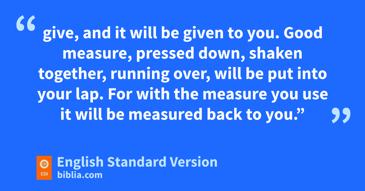 37 ij“Judge not, and you will not be judged; condemn not, and you will not be condemned; jforgive, and you will be forgiven; 38 kgive, and it will be given to you. Good measure, pressed down, shaken together, running over, will be put linto your lap. For mwith the measure you use it will be measured back to you.”