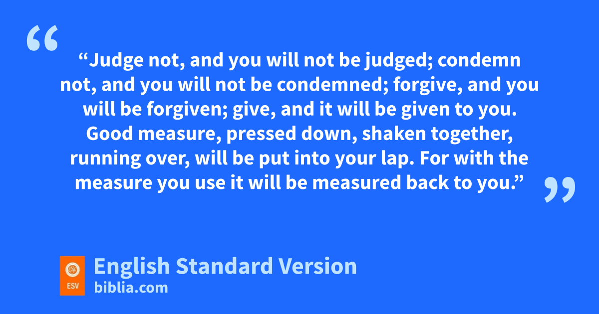 37 ij“Judge not, and you will not be judged; condemn not, and you will not be condemned; jforgive, and you will be forgiven; 38 kgive, and it will be given to you. Good measure, pressed down, shaken together, running over, will be put linto your lap. For mwith the measure you use it will be measured back to you.”