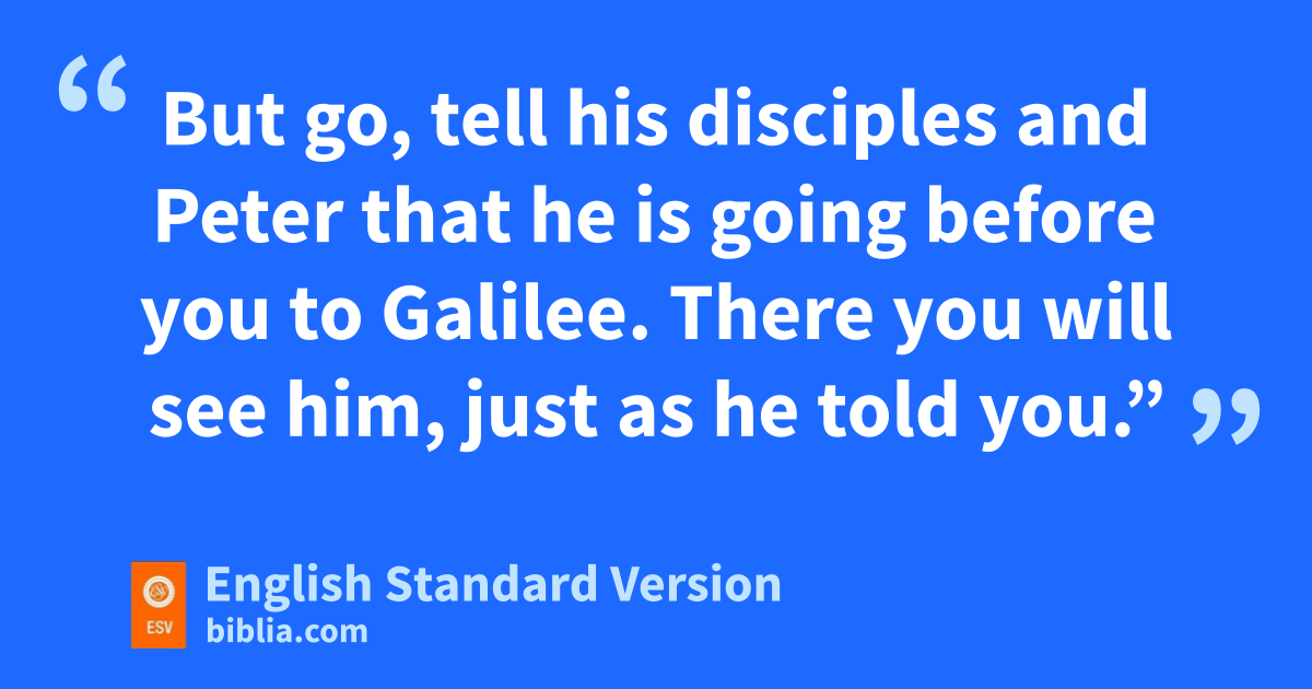 16 uvWhen the Sabbath was past, wMary Magdalene, wMary the mother of James, and iSalome xbought spices, so that they might go and anoint him. 2 And very early on the first day of the week, when the sun had risen, they went to the tomb. 3 And they were saying to one another, “Who will roll away ythe stone for us from the entrance of the tomb?” 4 And looking up, they saw that the stone had been rolled back—zit was very large. 5 And aentering the tomb, they saw a young man sitting on the right side, bdressed in ca white robe, and dthey were alarmed. 6 And he said to them, d“Do not be alarmed. You seek Jesus of Nazareth, who was crucified. He has risen; he is not here. See the place where they laid him. 7 But go, tell his disciples and Peter that ehe is going before you to Galilee. There you will see him, ejust as he told you.” 8 And they went out and fled from the tomb, for trembling and astonishment had seized them, and they said nothing to anyone, for they were afraid.