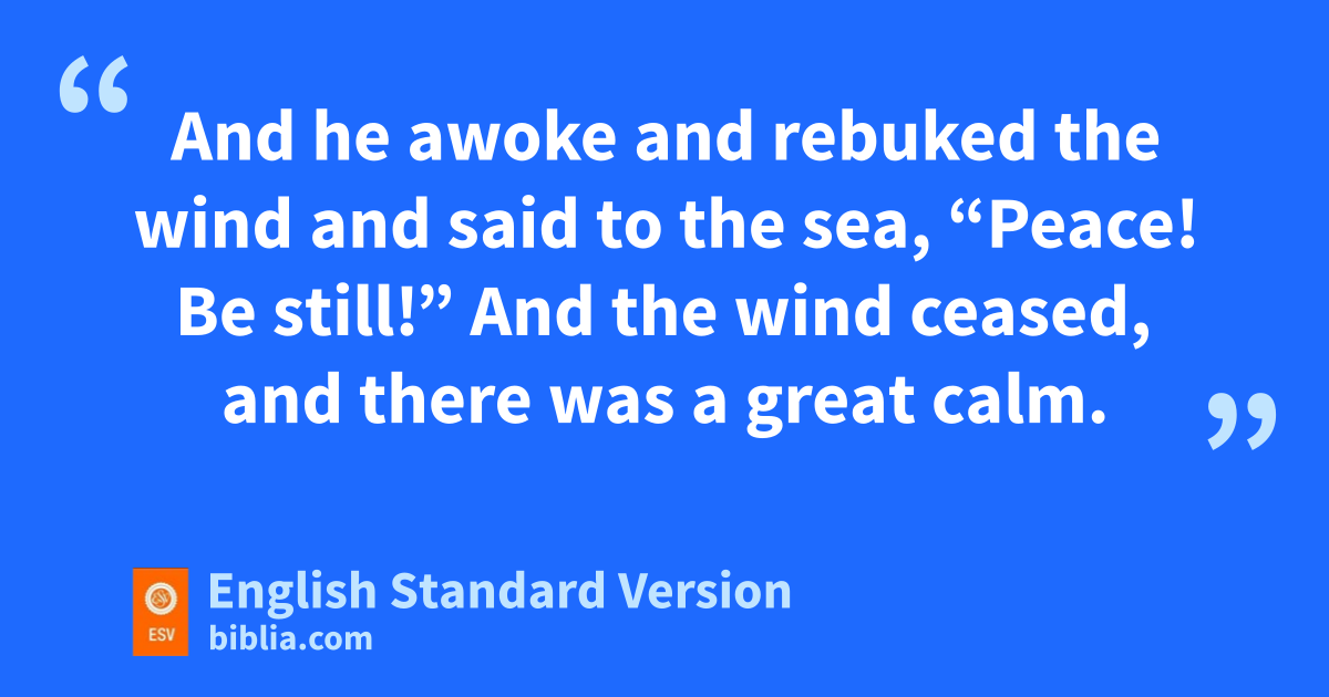 35 nOn that day, when evening had come, he said to them, “Let us go across to the other side.” 36 And leaving the crowd, they took him with them in the boat, just as he was. And other boats were with him. 37 And a great windstorm arose, and the waves owere breaking into the boat, so that the boat was already filling. 38 But he was in the stern, asleep on the cushion. And they woke him and said to him, “Teacher, do you not care that we are perishing?” 39 And he awoke and prebuked the wind and said to the sea, “Peace! Be still!” And the wind ceased, and qthere was a great calm. 40 He said to them, “Why are you rso afraid? Have you still no faith?” 41 And they were filled with great fear and said to one another, s“Who then is this, that even tthe wind and the sea obey him?”