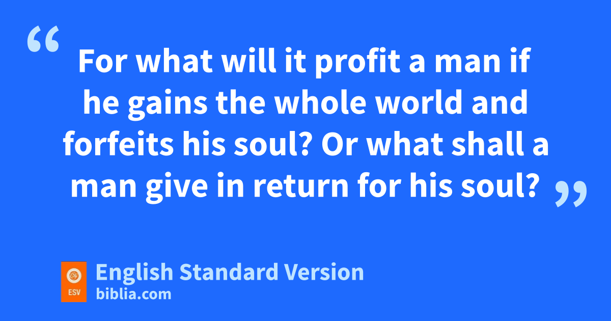 24 Then Jesus told his disciples, “If anyone would come after me, let him wdeny himself and xtake up his cross and follow me. 25 For xwhoever would save his life7 will lose it, but whoever loses his life for my sake will find it. 26 For ywhat will it profit a man if he gains the whole world and forfeits his soul? Or zwhat shall a man give in return for his soul? 27 aFor the Son of Man is going to come with bhis angels in the glory of his Father, and cthen he will repay each person according to what he has done. 28 Truly, I say to you, there are some standing here who will not dtaste death euntil they see the Son of Man fcoming in his kingdom.”