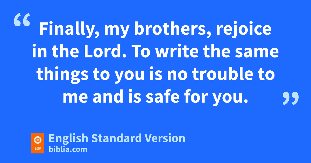 3 Finally, my brothers,1 krejoice in the Lord. lTo write the same things to you is no trouble to me and is safe for you.