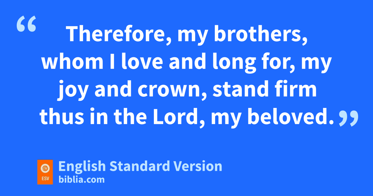 4 Therefore, my brothers,1 whom I love and jlong for, kmy joy and lcrown, mstand firm thus in the Lord, my beloved.