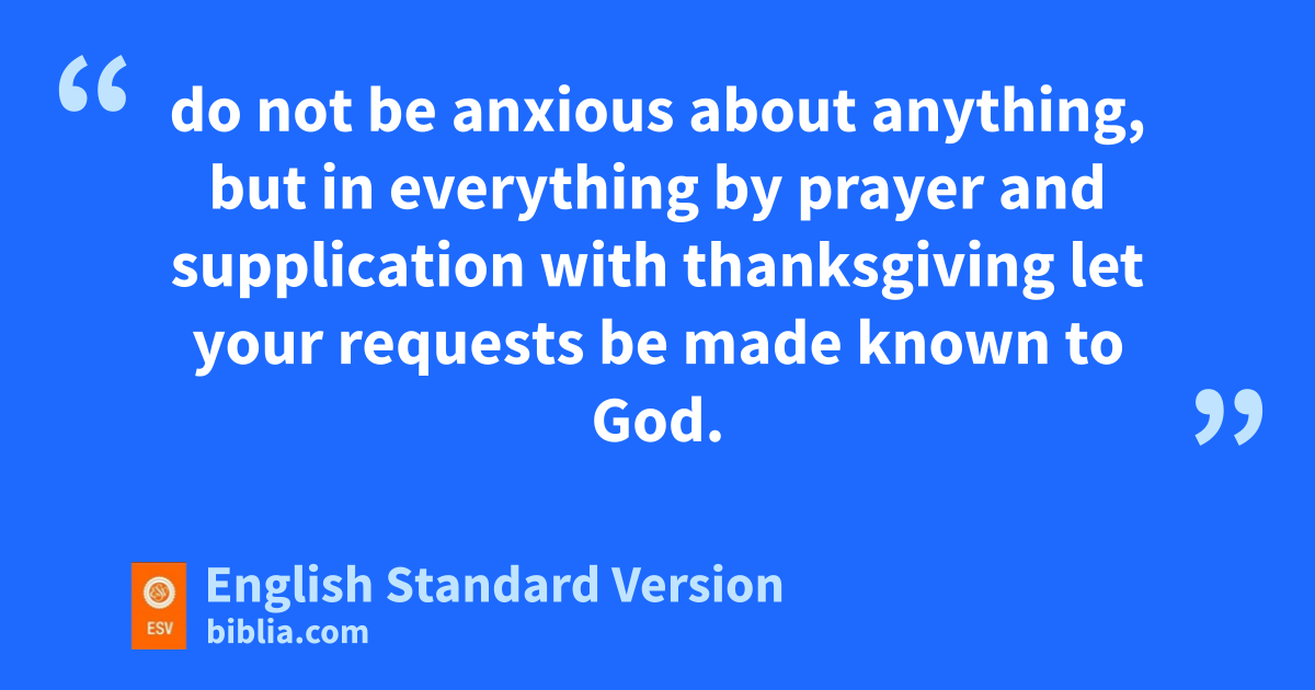 4 pRejoice in the Lord always; again I will say, rejoice. 5 Let your reasonableness4 be known to everyone. qThe Lord is at hand; 6 rdo not be anxious about anything, sbut in everything by prayer and supplication twith thanksgiving let your requests be made known to God. 7 And uthe peace of God, vwhich surpasses all understanding, will guard your hearts and your minds in Christ Jesus.