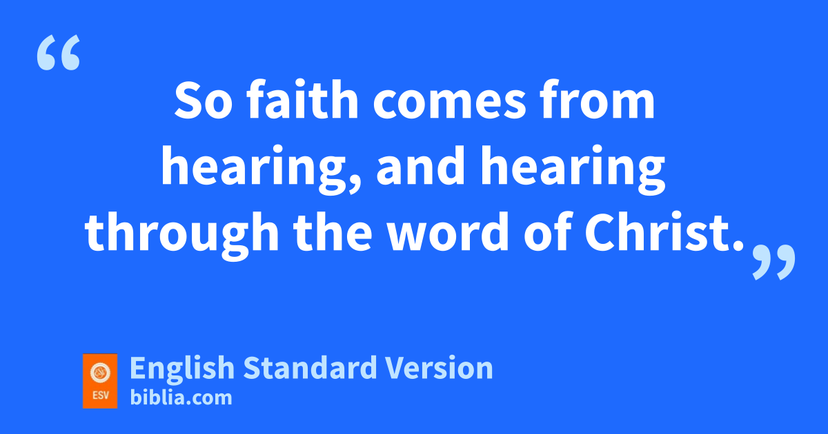 14 How then will they call on him in whom they have not believed? And how are they to believe in him uof whom they have never heard?3 And how are they to hear vwithout someone preaching? 15 And how are they to preach unless they are sent? As it is written, w“How beautiful are the feet of those who preach the good news!” 16 But xthey have not all obeyed the gospel. For Isaiah says, y“Lord, who has believed what he has heard from us?” 17 So zfaith comes from hearing, and hearing through the word of Christ.
