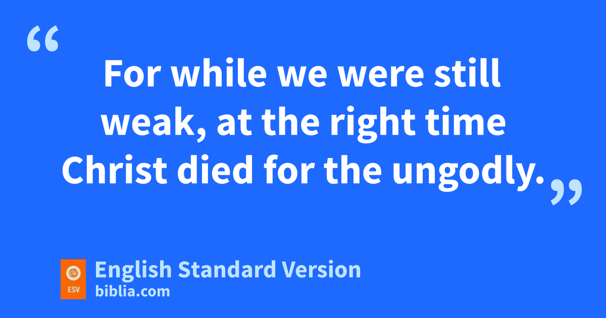 6 For jwhile we were still weak, at the right time kChrist died for the ungodly. 7 For one will scarcely die for a righteous person—though perhaps for a good person one would dare even to die— 8 but lGod shows his love for us in that mwhile we were still sinners, Christ died for us. 9 Since, therefore, nwe have now been justified by his blood, much more shall we be saved by him from othe wrath of God. 10 For if pwhile we were enemies qwe were reconciled to God by the death of his Son, much more, now that we are reconciled, shall we be saved by rhis life. 11 More than that, we also rejoice in God through our Lord Jesus Christ, through whom we have now received sreconciliation.