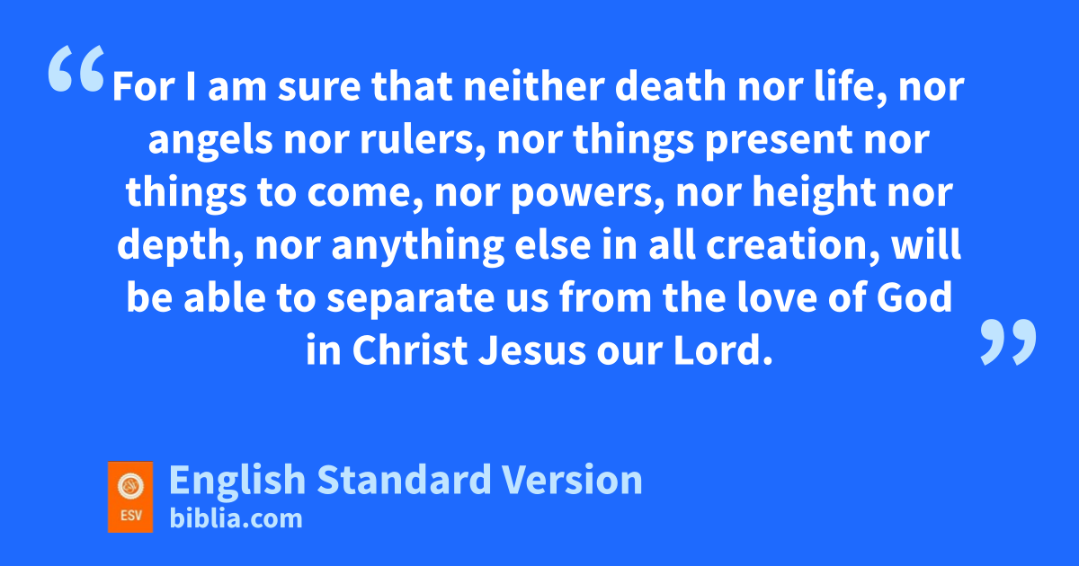 37 No, in all these things we are more than yconquerors through zhim who loved us. 38 For I am sure that neither death nor life, nor angels nor rulers, nor things present nor things to come, nor powers, 39 nor height nor depth, nor anything else in all creation, will be able to separate us from the love of God in Christ Jesus our Lord.