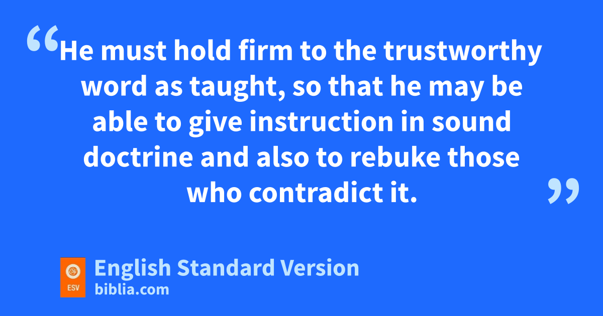 5 oThis is why I left you in Crete, so that you might put what remained into order, and pappoint elders in every town as I directed you— 6 qif anyone is above reproach, the husband of one wife,4 and his children are believers5 and not open to the charge of rdebauchery or insubordination. 7 For an overseer,6 sas God’s steward, must be above reproach. He must not tbe arrogant or quick-tempered or a drunkard or violent uor greedy for gain, 8 but hospitable, a lover of good, self-controlled, upright, holy, vand disciplined. 9 He must whold firm to the trustworthy word as taught, so that he may be able to give instruction in xsound7 doctrine and also to rebuke those who contradict it.