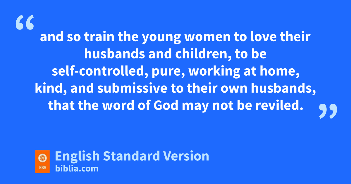 2 But as for you, teach what accords with psound1 doctrine. 2 Older men are to be sober-minded, dignified, self-controlled, psound in faith, in love, and in steadfastness. 3 qOlder women likewise are to be reverent in behavior, rnot slanderers sor slaves to much wine. They are to teach what is good, 4 and so train the young women to love their husbands and children, 5 to be self-controlled, tpure, uworking at home, kind, and vsubmissive to their own husbands, wthat the word of God may not be reviled. 6 Likewise, urge xthe younger men to be self-controlled. 7 Show yourself in all respects to be ya model of good works, and in your teaching zshow integrity, adignity, 8 and bsound speech that cannot be condemned, cso that an opponent may be put to shame, having nothing evil to say about us. 9 dBondservants2 are to be submissive to their own masters ein everything; they are to be well-pleasing, not argumentative, 10 not pilfering, fbut showing all good faith, gso that in everything they may adorn the doctrine of God our Savior.