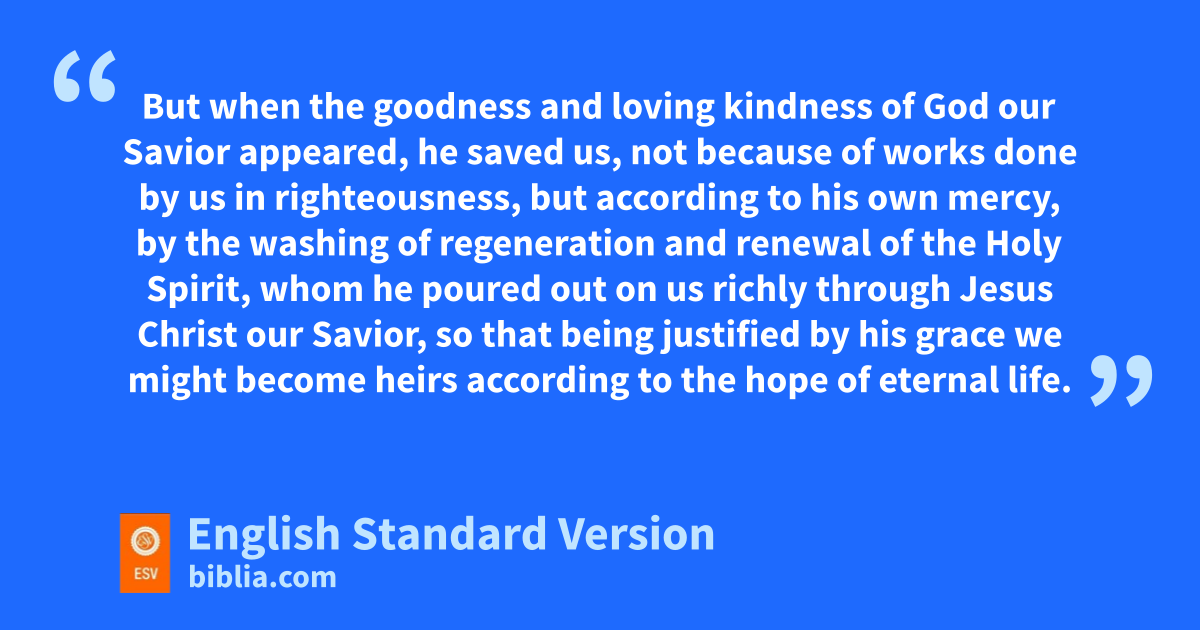3 Remind them xto be submissive to rulers and authorities, yto be obedient, to be ready for every good work, 2 zto speak evil of no one, ato avoid quarreling, to be gentle, and bto show perfect courtesy toward all people. 3 For cwe ourselves were once foolish, disobedient, led astray, slaves to various passions and pleasures, passing our days in malice and envy, hated by others and hating one another. 4 But when dthe goodness and loving kindness of God our Savior appeared, 5 he saved us, enot because of works done by us in righteousness, but faccording to his own mercy, by gthe washing of regeneration and hrenewal of the Holy Spirit, 6 whom he ipoured out on us richly through Jesus Christ our Savior, 7 so that jbeing justified by his grace we might become kheirs laccording to the hope of eternal life. 8 The saying is mtrustworthy, and I want you to insist on these things, so that those who have believed in God may be careful nto devote themselves to good works. These things are excellent and profitable for people. 9 But oavoid foolish pcontroversies, qgenealogies, dissensions, and quarrels about the law, for rthey are unprofitable and worthless. 10 As for a person who stirs up division, safter warning him once and then twice, thave nothing more to do with him, 11 knowing that such a person is warped and sinful; he is self-condemned.