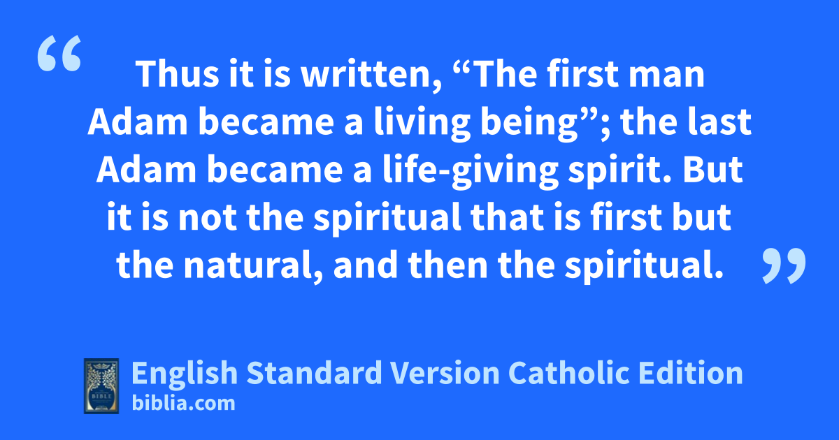 Thus it is written, “The first man Adam became a living being”; the last Adam became a life-giving spirit. But it is not the spiritual that is first but the natural, and then the spiritual.