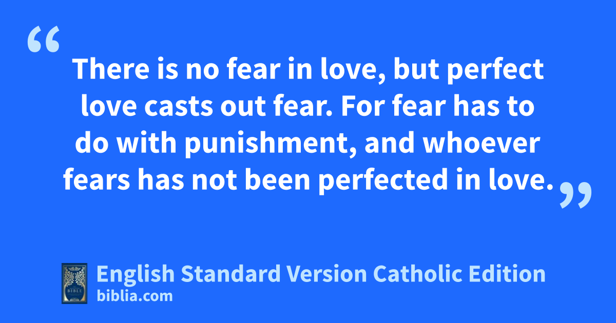 There is no fear in love, but perfect love casts out fear. For fear has to do with punishment, and whoever fears has not been perfected in love.